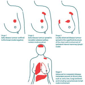 วิทยาการปัจจุบันในการรักษามะเร็งเต้านมนั้น เราจะแบ่งระยะอย่างคร่าวๆ เพื่อสะดวกในการเข้าใจ ดังนี้
