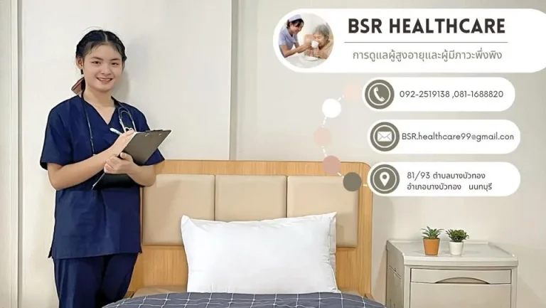 บีเอสอาร์ เฮลท์แคร์ ศูนย์ดูแลผู้สูงอายุ ศูนย์ดูแลผู้สูงอายุ นนทบุรี ดูแลผู้สูงอายุ และ ผู้ป่วยระยะพักฟื้นให้การดูแลผู้สูงอายุและผู้มีภาวะพึ่งพิง BSR Healthcare เป็นศูนย์ที่มีคุณหมอ พยาบาล และนักกายภาพบำบัด บีเอสอาร์ เฮลท์แคร์ มีเจ้าหน้าที่ ที่มีความเชี่ยวชาญในการดูแลผู้ป่วยและดูแลผู้ป่วยติดเตียงเทียบเท่ากับโรงพยาบาล ให้การดูแลตลอด 24 ชั่วโมง มีบริการห้องพักที่สะอาดถูกสุขลักษณะ มีเครื่องอำนวยความสะดวก เครื่องทำน้ำอุ่น บริการซักรีด ค่าอาหาร ห้องพักปรับอากาศทั้งหมด อำนวยความสะดวกสบายอย่างครบครัน นอกจากนี้ยังมีบรรยากาศที่เป็นธรรมชาติ ทำให้รู้สึกสบาย เงียบสงบเป็นส่วนตัว เหมาะสำหรับการดูแลผู้สูงอายุ ดูแลผู้ป่วย ผู้พักฟื้นโดยเฉพาะ
